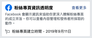 另外教大家一招,在每一個粉絲專頁裡面都有這個「粉絲專頁資訊透明度」可以參考,像這個詐騙帳號還是近期(2019/9/11)建立的。