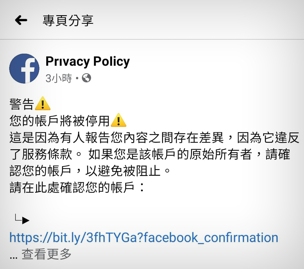 這個手法其實很久了,但是都會替換成其他文案繼續詐騙,主要都是透過「網路釣魚」的方式,常假裝成社群平台的官方帳號頁面,並給你奇怪的網址要你輸入帳號密碼。