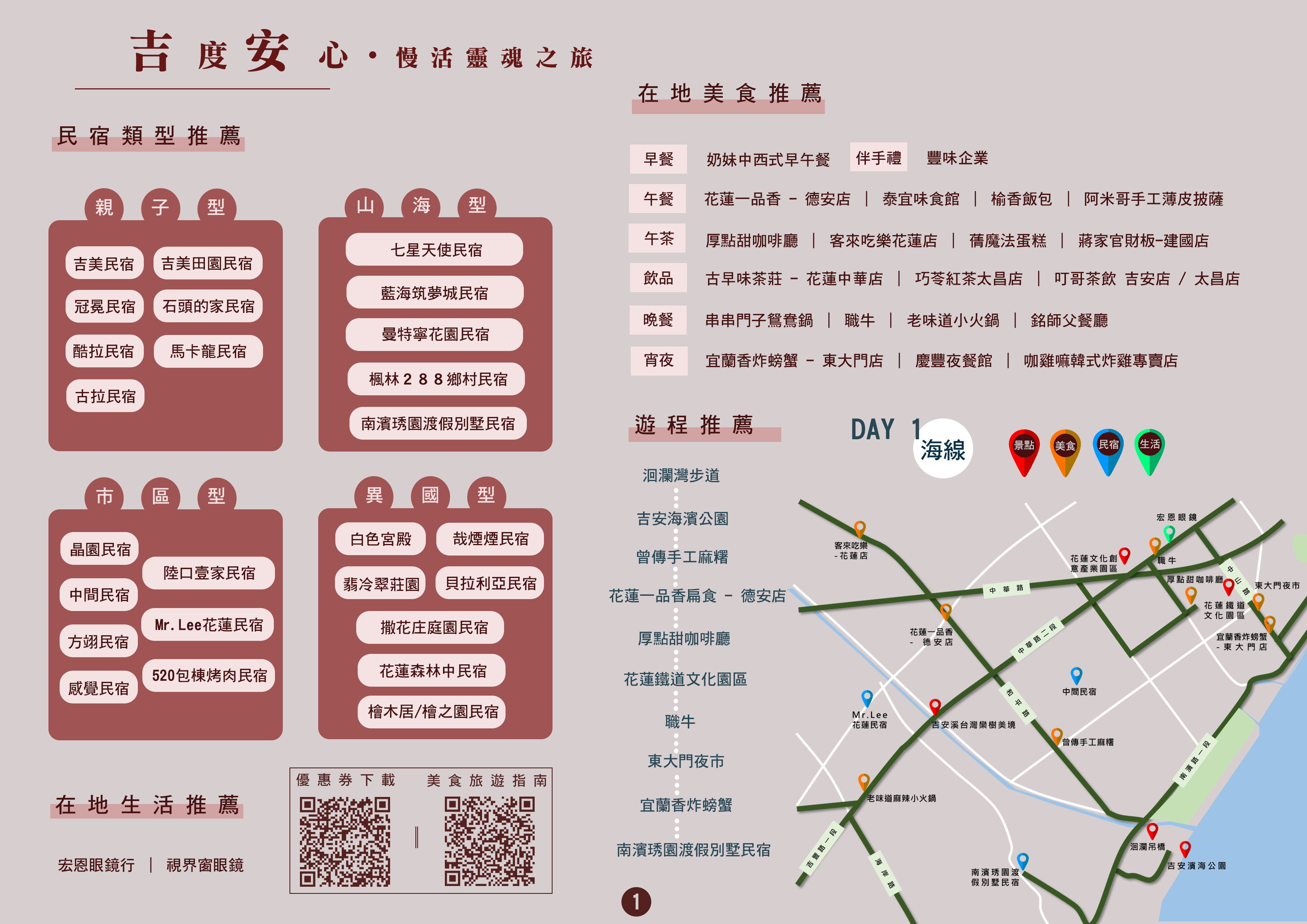 若想有趟專屬的「吉安一日遊」行程,也可參照底下的延伸閱讀,直接結合偽出國熱點「張家の樹園」、「新天堂樂園&星巴克─洄瀾門市」和多款午晚餐的美食選擇地,讓你可以「偽佛系出遊,真遊歷走踏」吉安各處的景點美食,絕不踩雷、真心推薦!
