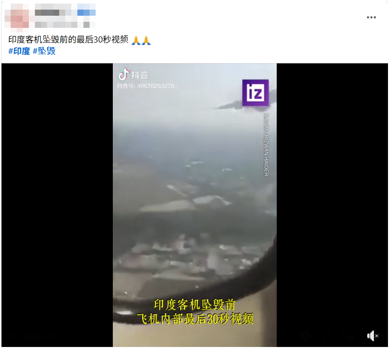 網傳印度客機墜毀前的最後30秒影片?