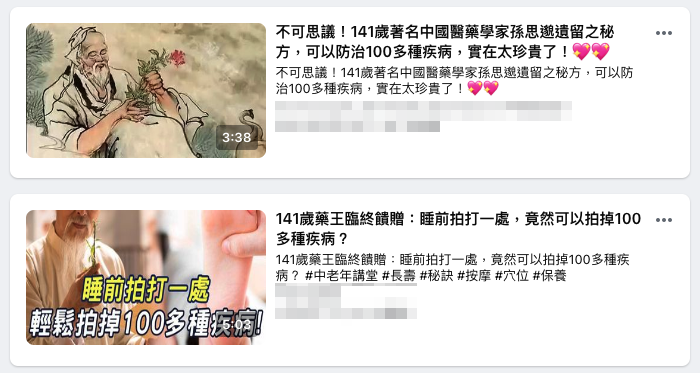 網傳一段有關以手心勞宮穴拍打腳心湧泉穴的影片,提到是唐朝孫思邈的長壽秘方,能防治包括高血壓、心臟病的 127 種疾病。但專家表示,1400 年前的《千金要方》養生方法無法直接對應,現代人的生活,飲食、生活作息、環境污染大為不同,只能說古人的拍穴位、活絡氣血,和現代人所從事的各種運動,一樣都有保健功效,但不能宣稱治療疾病,即使是說「防治」疾病都屬誇大。