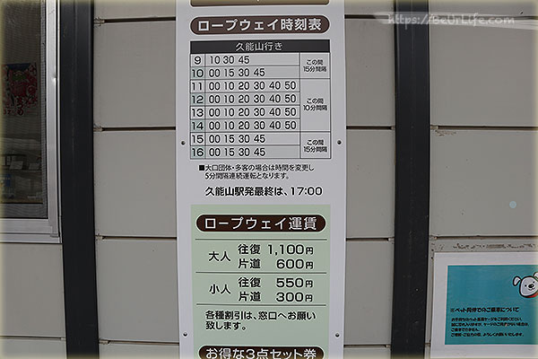 單程的纜車是 600元日幣,來回 1,100元日幣