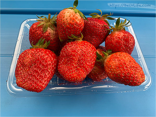 所以,我們就到公車站一旁的草莓園買草莓,果然現場就是新鮮 ~ 而且都超大顆的!!