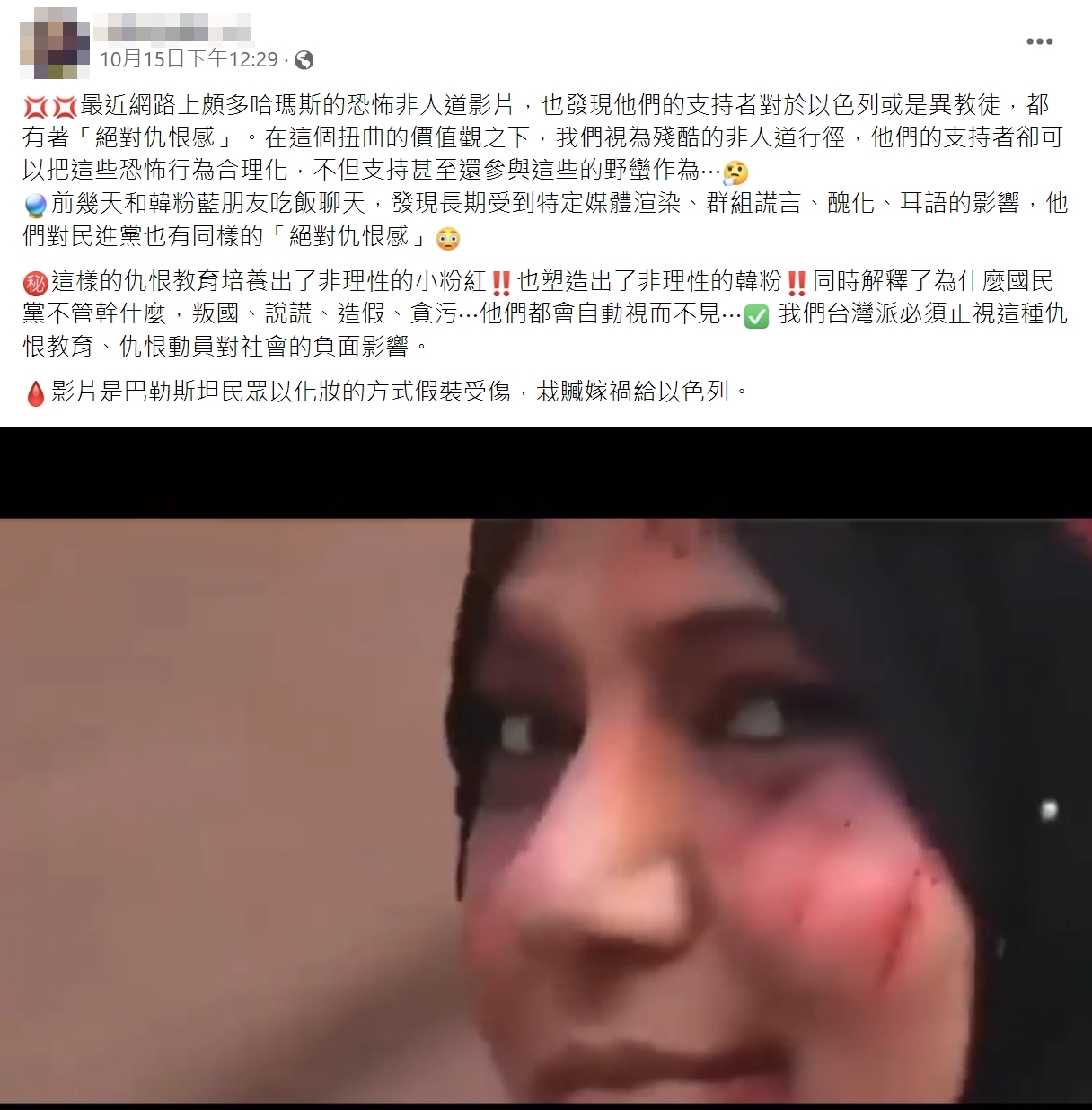 🩸影片是巴勒斯坦民眾以化妝的方式假裝受傷,栽贓嫁禍給以色列。
