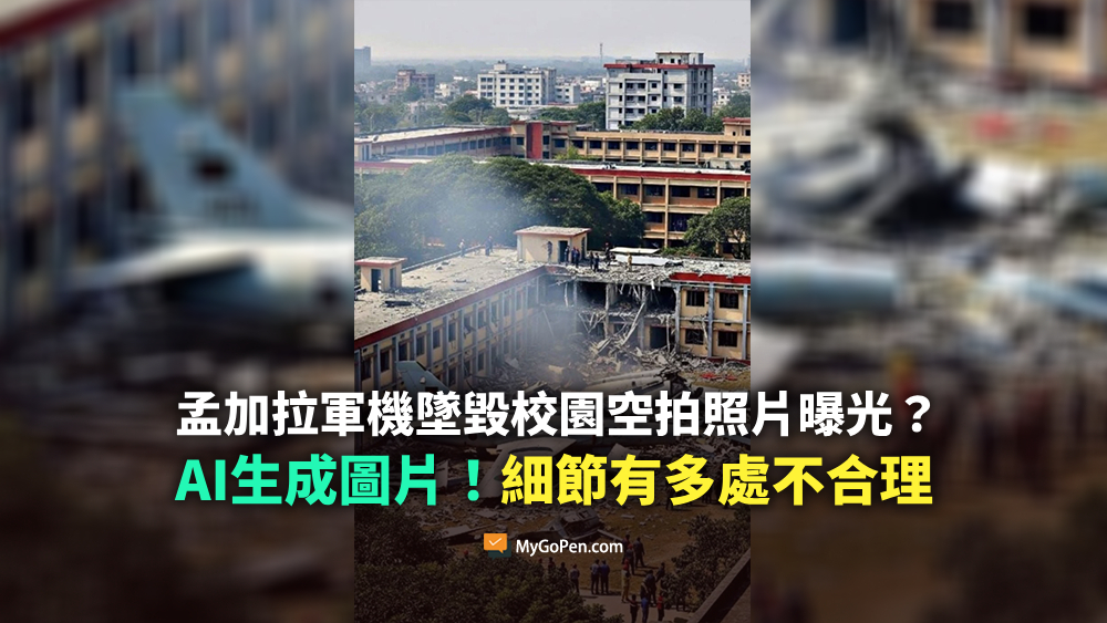【錯誤】孟加拉軍機墜毀校園空拍照片曝光?AI生成圖片!多處細節不合理