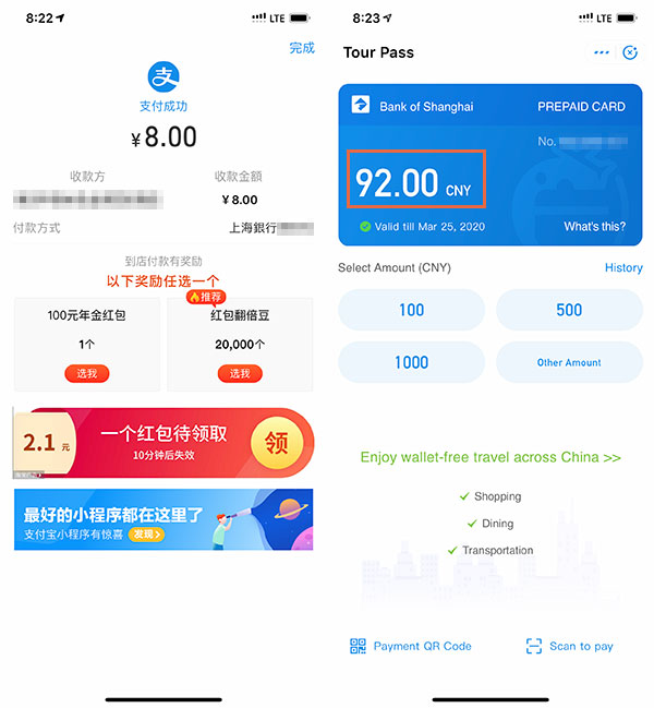 終於到大陸出差、旅行也可以使用支付寶