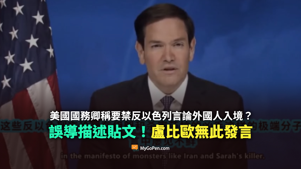 【誤導】美國務卿稱要禁止任何發布反以色列言論的外國公民入境?盧比歐無此發言