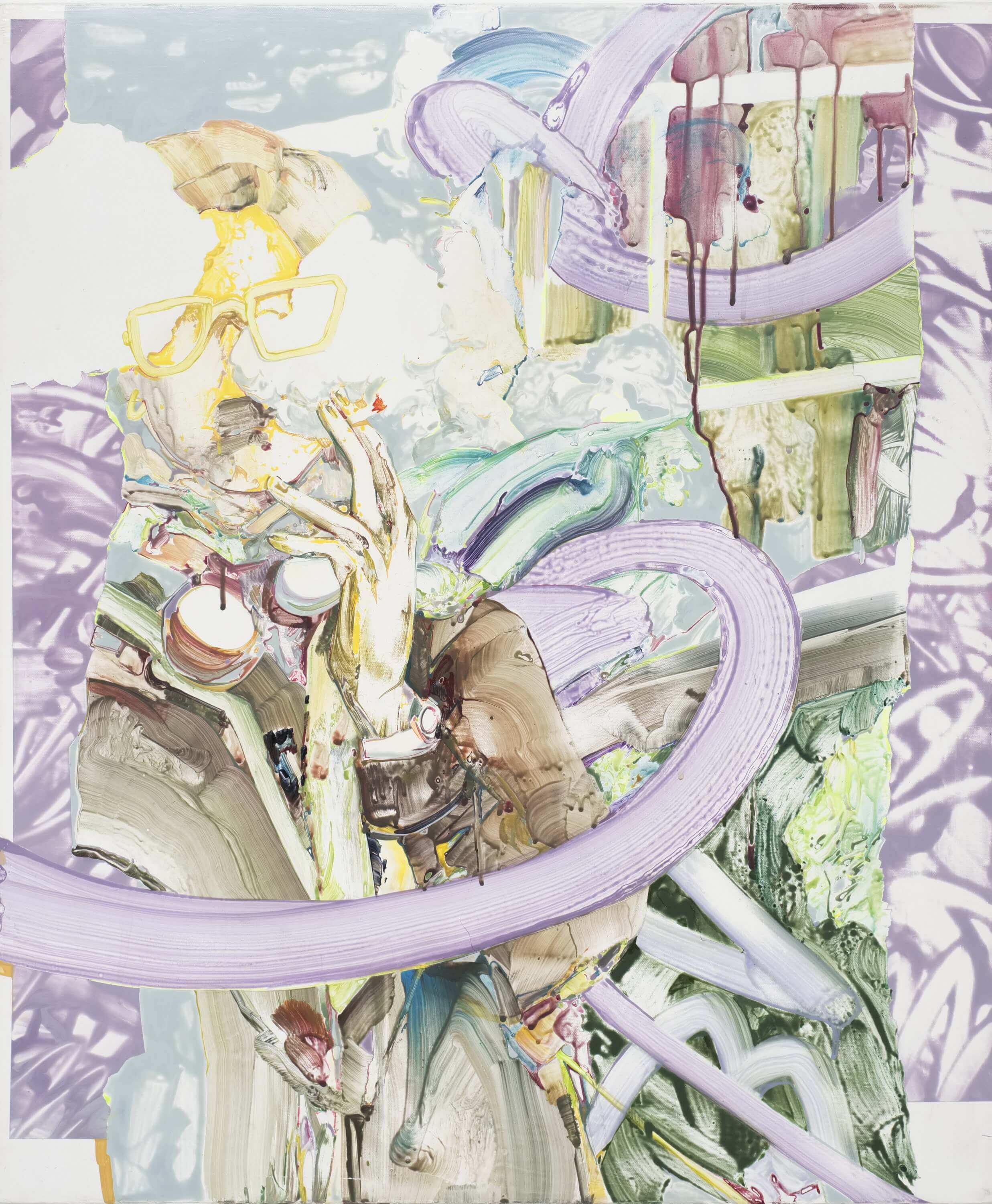 基於對網路影像的觀察與思考,《限時動態》中的創作經過了多層的轉換。除了主題本身,傅寧的作畫方式也回應著數位網路中影像的生成。在本次發表的系列中,為了模擬螢幕中的影像質感,(過去較少使用畫布作畫的)傅寧運用打底劑製作了粗細不同的畫面質地。其中細膩光滑的部分,讓顏料更能表現出流動的、半透明的立體筆觸。@P