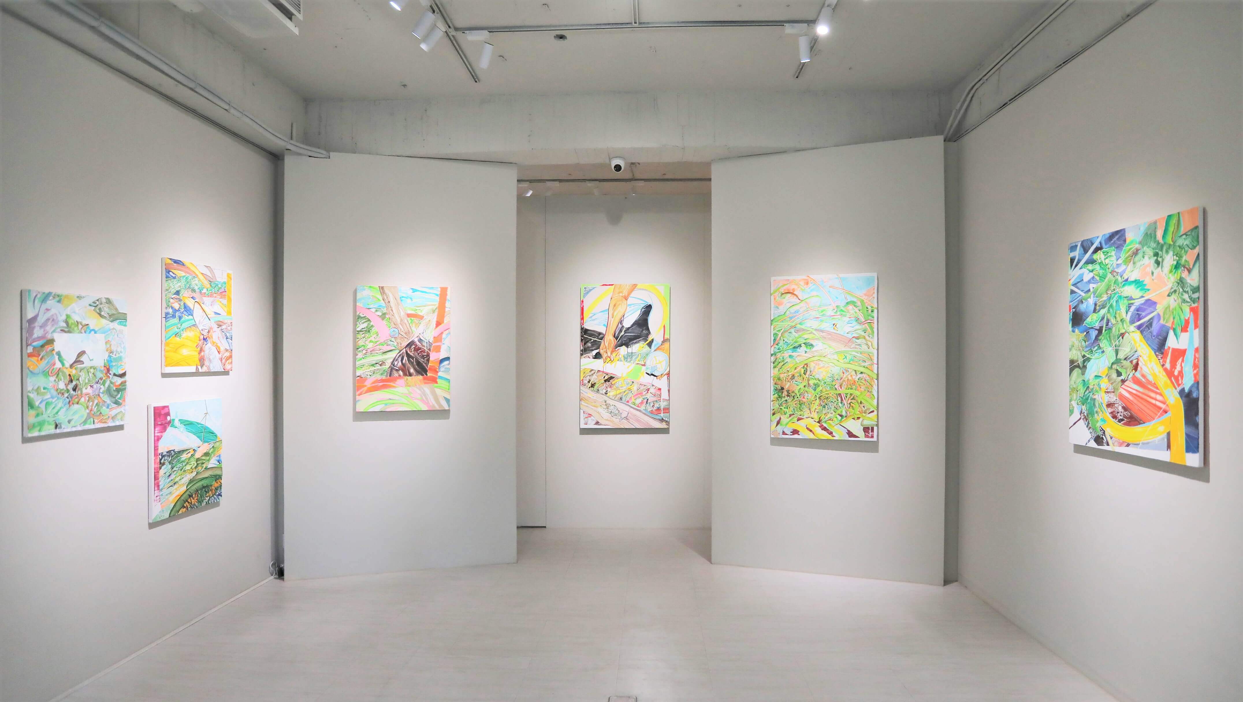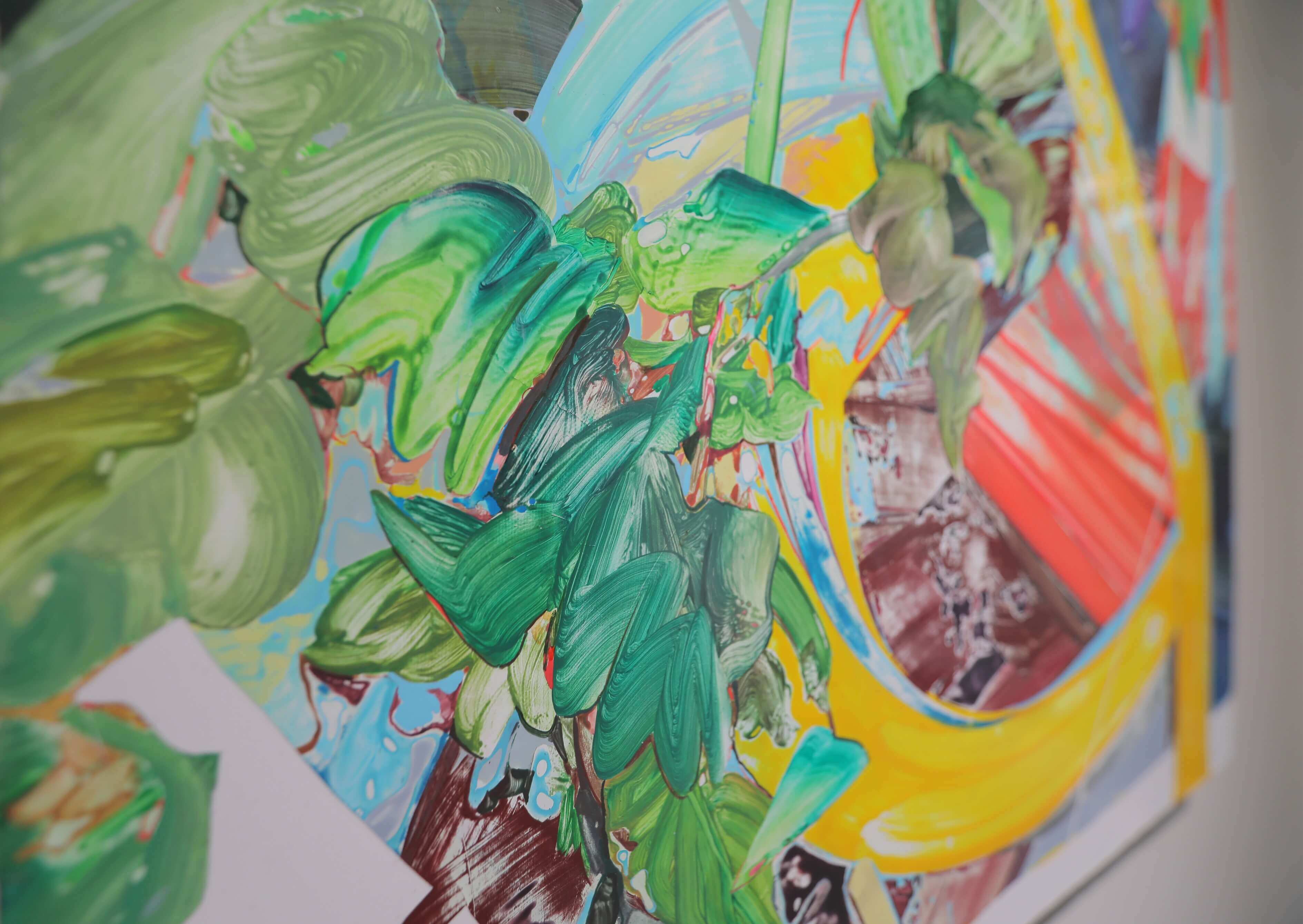 網路上的影像,展現的自然是上傳者「願意被看見的那一面」。無論內容是何種性質、主題,往往在視覺上是比現實世界更加美化的。然而真實與虛擬之間必然存在落差,這帶給了傅寧一種身體感的失落。於是傅寧試圖透過繪畫實踐,去補足介於真實人生和社交平台之間的違和感。面對現實與網路的落差,傅寧開始將一幀一幀的美好影像「重新再畫過一遍」。透過解構重組,對於影像的本身展開了梳理。在使用限時動態功能時,越是大量的影像,使用者在手機上點擊的速度會越快。這種迅速在螢幕上閃過大量影像的視覺經驗,則是被傅寧轉換為畫作中扭曲、流動、非寫實的繪畫風格。