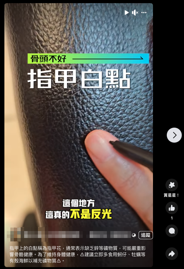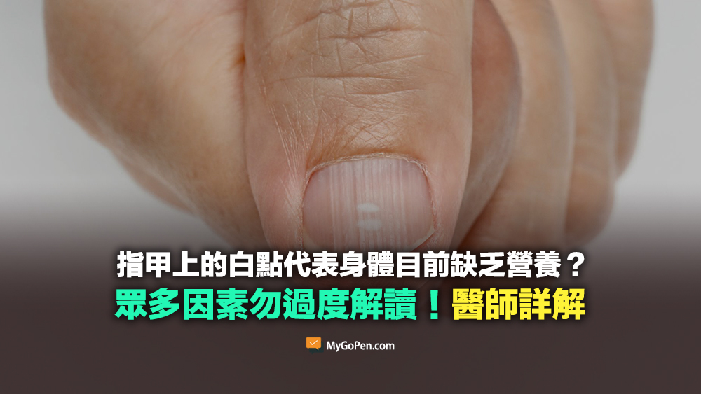 傳言提到「手指頭有白點、這個稱作指甲花,營養學上都是缺鋅」。MyGoPen 致電諮詢皮膚科醫師趙昭明,他表示指甲出現各種狀況,可能的原因很多,包括: