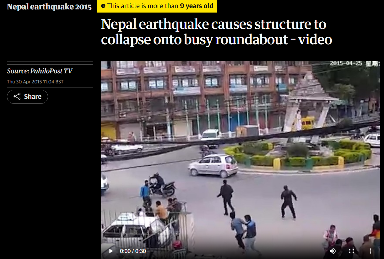 The Guardian - Nepal earthquake causes structure to collapse onto busy roundabout – video