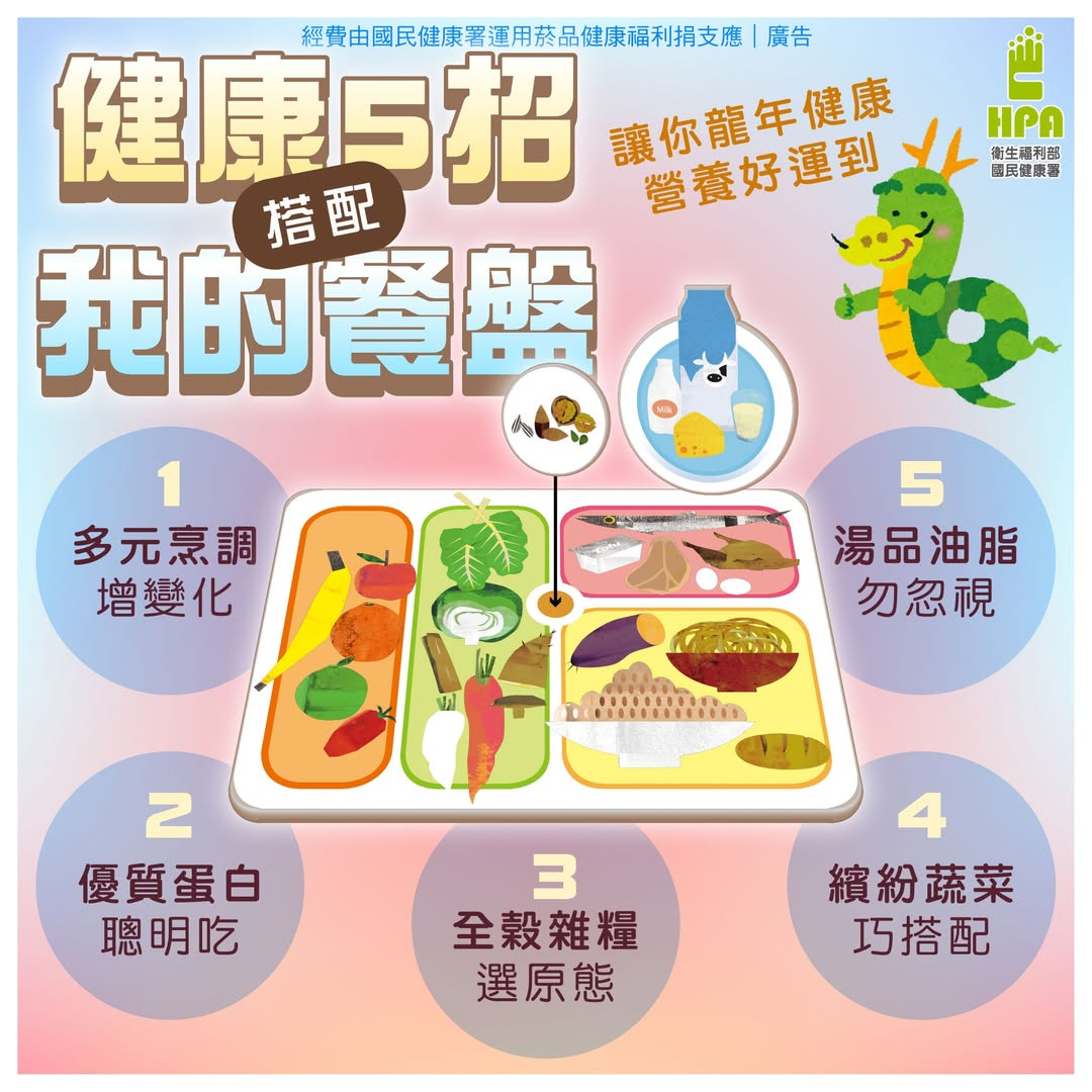 MyGoPen查詢發現,國健署曾在 2024 年 2 月宣導年菜健康煮、均衡吃的「健康 5 招」中提到:
