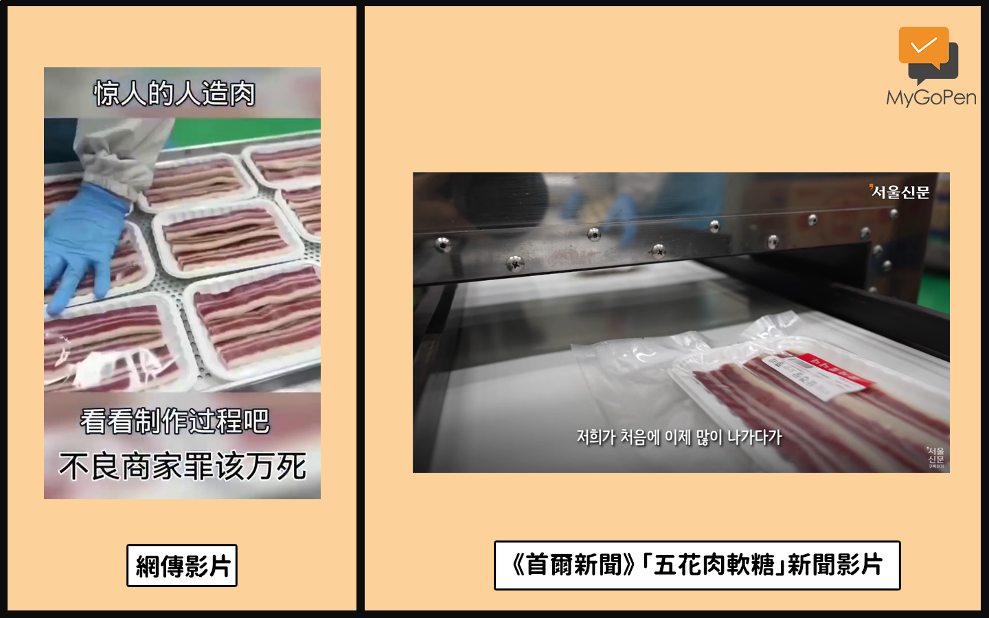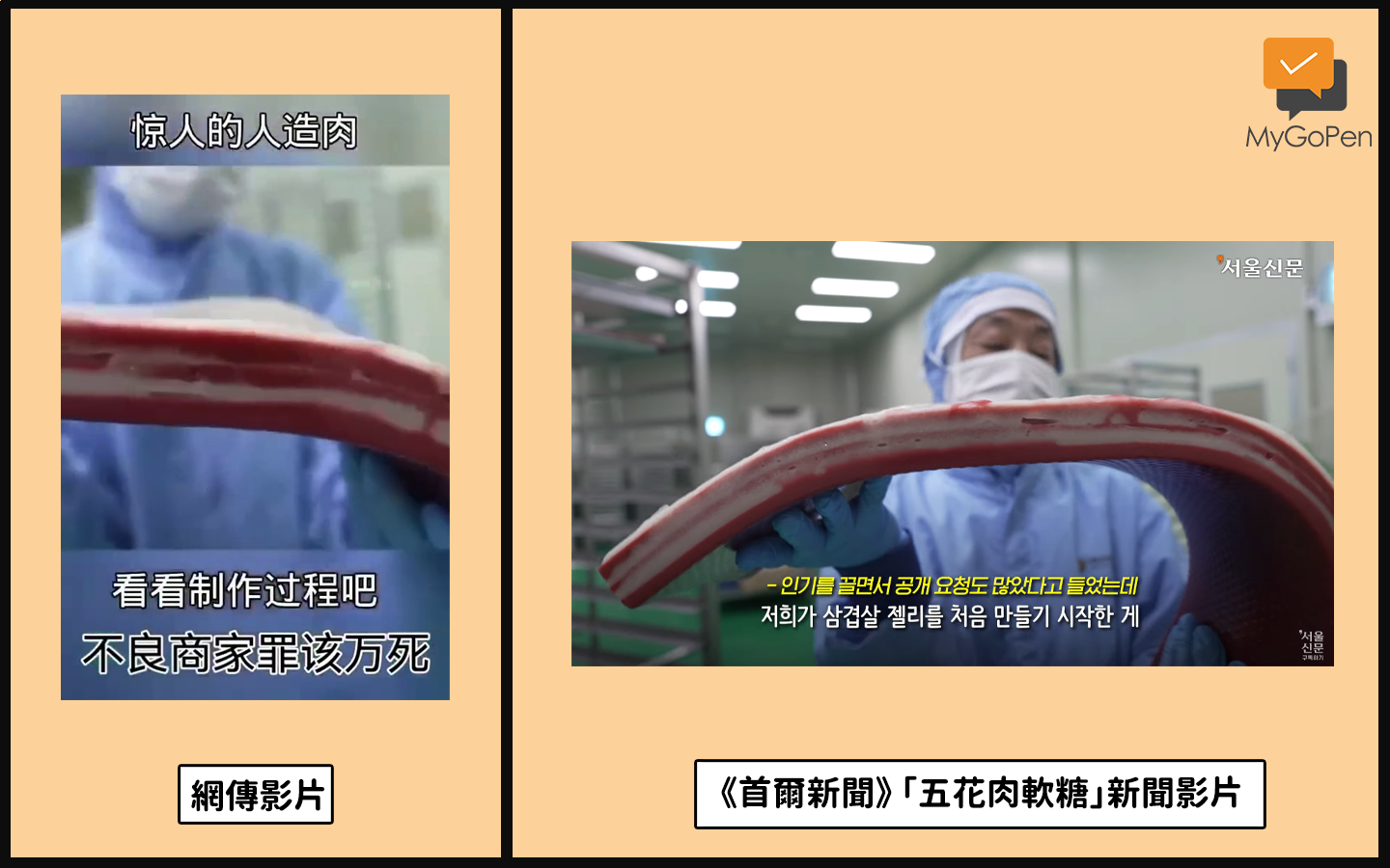 《首爾新聞》獨家採訪到了擁有此像軟糖專利的崔社長,並公開了五花肉軟糖的製作過程;經比對,其拍攝角度雖然和網傳影片不同,但內容是一樣的,由此可知,網傳影片其實並不是人造肉。