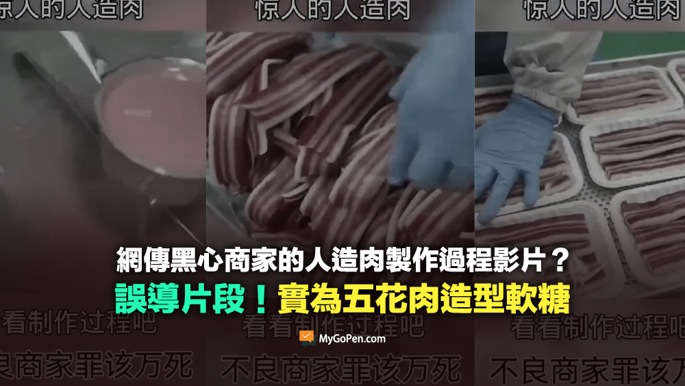 【錯誤】網傳黑心商家的人造肉製作過程影片?實為五花肉造型軟糖