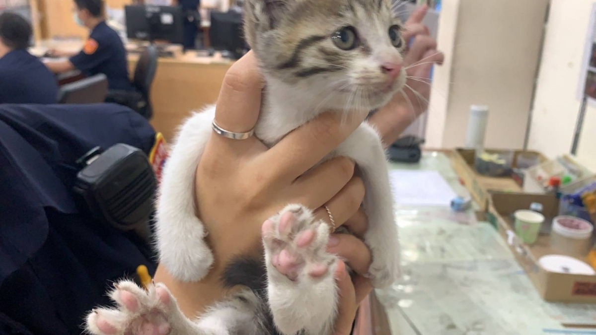 當天協助抓住小貓的民眾林小姐,事後到派出所表示願意認養。圖:讀者提供