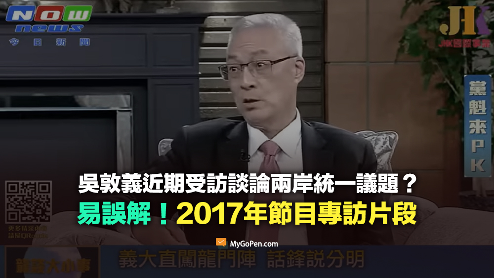 【易誤解】吳敦義近期受訪談論兩岸統一議題?影片實為2017年節目專訪片段