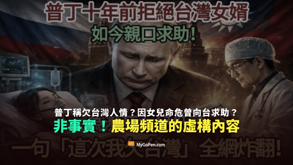 【錯誤】普丁稱欠台灣人情?因女兒命危曾向台求助?非事實!農場頻道的虛構內容