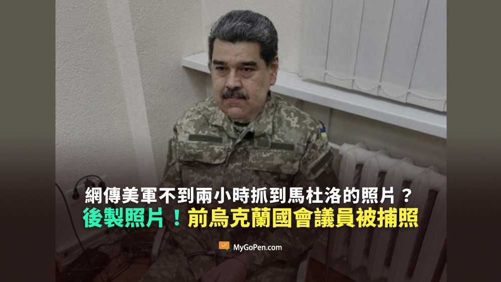 網傳照片實為前親俄派烏克蘭國會議員梅德韋丘克在 2022 年逃亡被捕的畫面,並非美軍抓到馬杜洛的照片,傳言是將馬杜洛的頭後製加上去,為錯誤訊息。