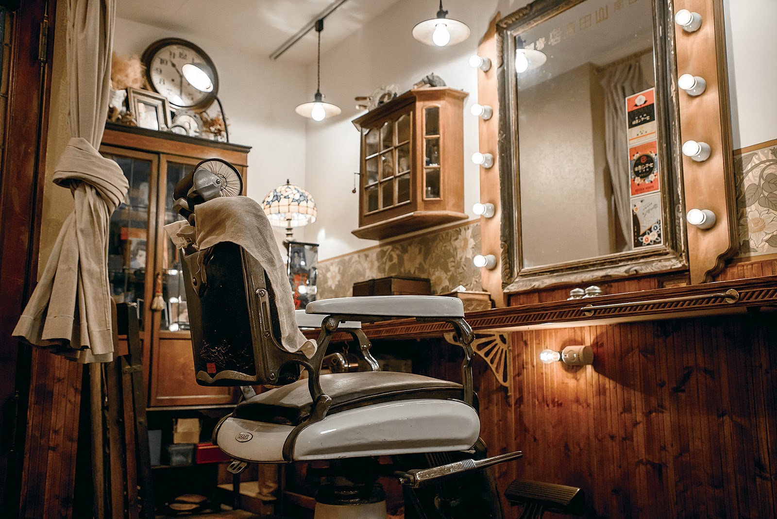 還沒來得及聊上幾句有關攝影的問題,就開始對周遭的環境嘖嘖稱奇,怎麼能夠營造出這麼完整的空間,維持設定的風格於其中,連壁紙都能具有時代感。李廣幽默的說出:「你只要有錢什麼都有可能。」這個瞬間大夥不禁莞爾一笑,被他的誠實給收服了。「每個時代都有它的優勢,我最懷念的年代約莫是1900至1920,甚至到1970也都滿喜歡的,特別是大正時代!大正浪漫就是一個形容詞,日本國勢鼎盛的時期,所有用品都很鋪張,也都很細緻,明治時期徹底西化,和洋風格吸收西方的風格製造出新的東方色彩。我花了7、8個月蒐集館內所有裝潢,原先這間店是在賣燒餅、油條,牆壁全都是壁癌,現在改成舊式理髮廳,慢慢修繕才有現在的樣貌。」