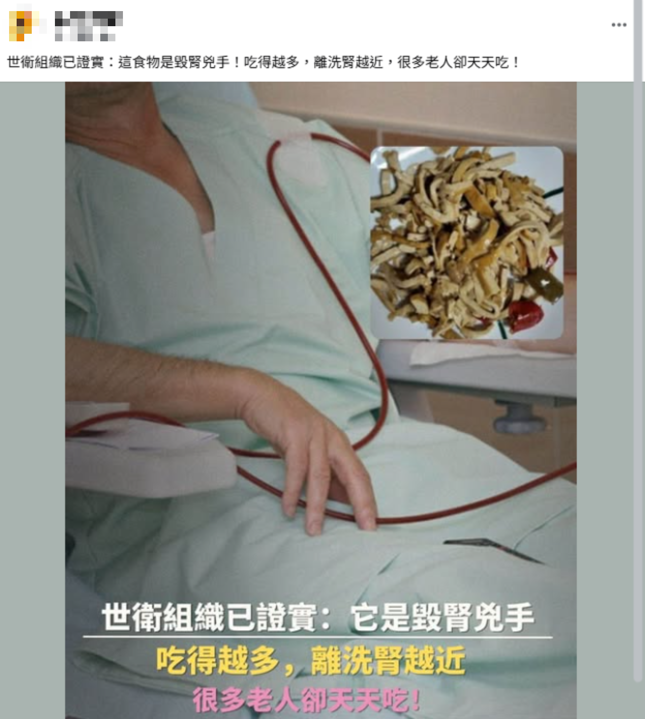網傳「世衛組織已證實:這食物是毀腎兇手」、「吃得越多,離洗腎越近」,提到豆腐因為含有植物性普林、是傷腎殺手。但專家及國健署都表示,豆腐是很好的蛋白質來源,且植物性普林不但不會增加痛風、傷腎,甚至近年一些研究還認為能幫助尿酸代謝,傳言為錯誤資訊。