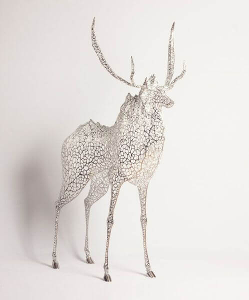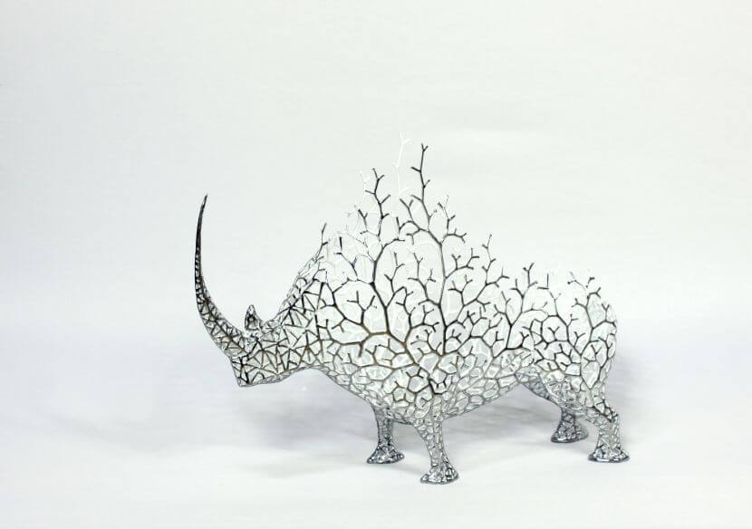 姜東見,《與森林共存 Forest of Coexistence 23-6》,2022,不銹鋼、PU漆,86x128x55 cm。圖/多納藝術提供
