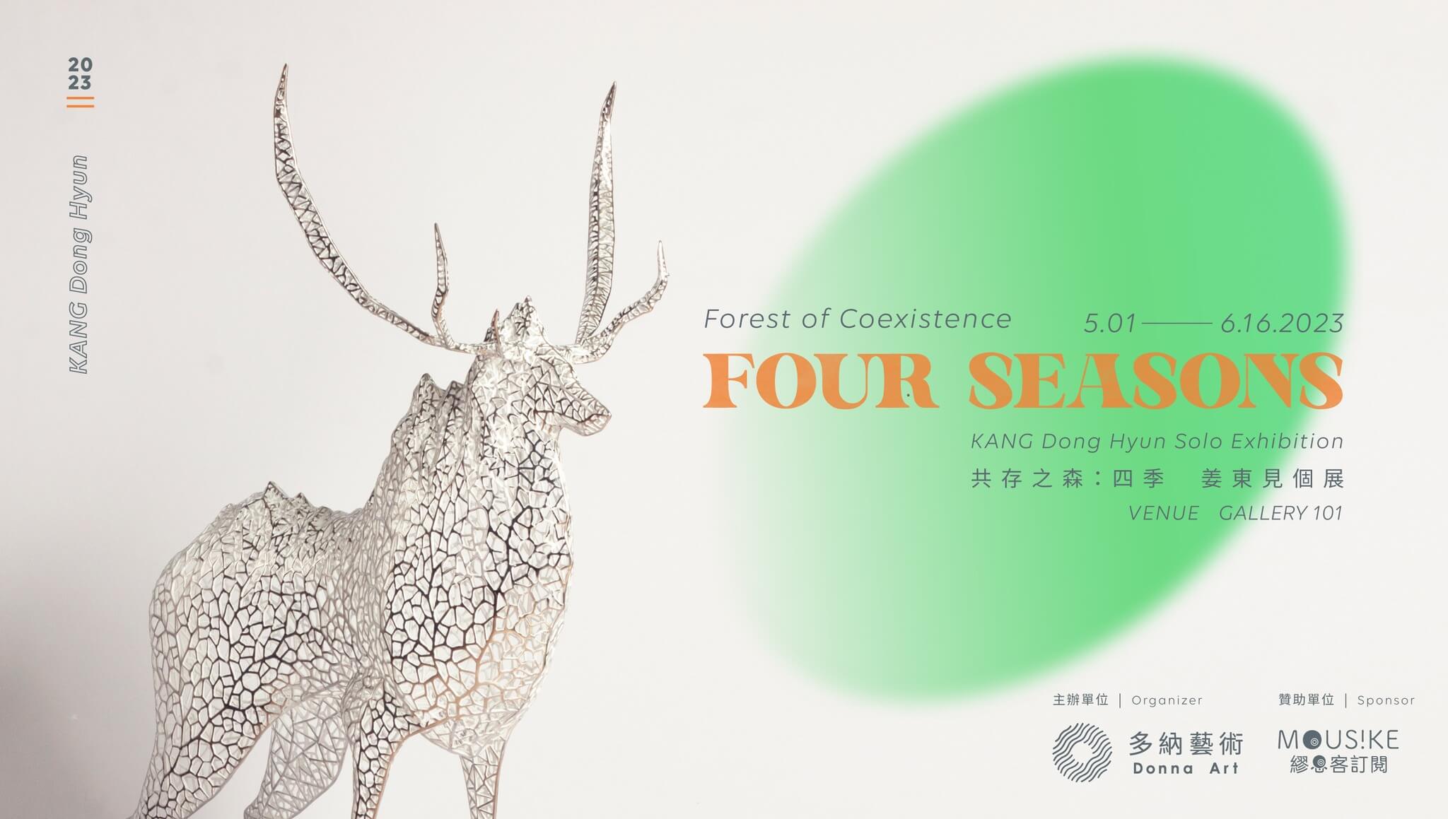 韓國藝術家姜東見 Kang Dong Hyun(1977-)畢業於昌原大學研究生院的雕塑系。近年來的姜東見獲獎無數,且積極地在各地進行藝術活動。其優異的成就也讓他受到母校的信任,受聘回校擔任教職。在姜東見亮麗與沉靜並存的雕塑風格中,對於生命與自然提出關懷,以一種婉約的方式與這個時代進行對話。多納藝術延續去(2022)年的《與森林共存》再度邀請姜東見合作,發表了個展《共存之森 - 四季》。展覽舉辦於台北市 Gallery 101,在《共存之森》系列(Forest of Coexistence)的脈絡之下,與台灣的觀眾們分享一系列耐人尋味新作。