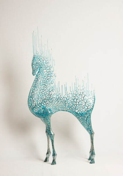 以取材而言,姜東見大多選擇的是草食動物,如鹿、牛、馬等等,或是將不同種類的動物造型相互融合。已略為誇飾的手法,讓動物無論是雄壯或輕巧的姿態,都具備豐富的造型美感。由此可見,姜東見所聚焦的並非是單一物種的特殊性,而是去強調它們「大自然一份子」的共通性質。意即對於姜東見而言,並非是藉由動物的種類、特性來敘事。而是期望能夠讓觀眾們感受到動物、植物甚至萬物之間相依相存的整體關係。